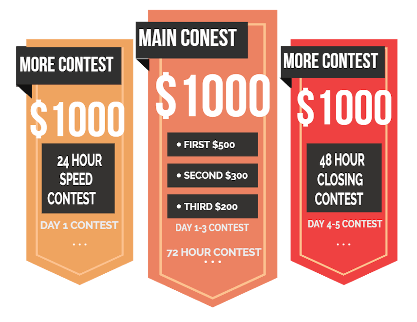 2. Contest 1 (Worth $1000) - This is a 72 hour contest and it starts on Day 1 and ends on Day 3